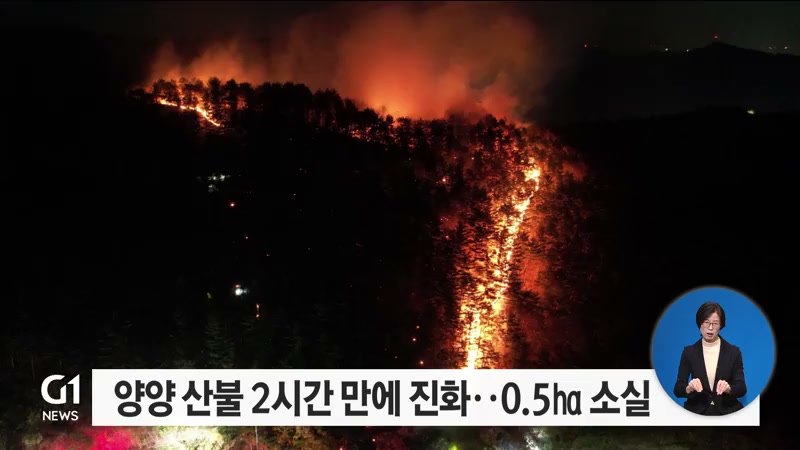 양양 산불 2시간 만에 진화..0.5㏊ 소실