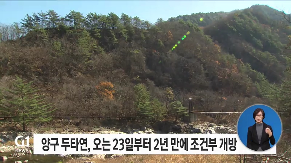 양구군은 오는 23일부터 민통선 내에 있는 두타연 관광지를 사전 출입 신청을 마친 희망자에 한해 하루 4회, 160명까지 출입을 허용한다고 밝혔습니다.