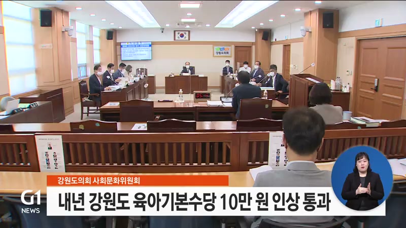 강원도의회 사회문화위원회는 강원도 보건복지여성국의 내년 당초 예산안 심사 결과, 기존 40만 원 이었던 육아기본수당을 10만 원 인상한 예산 1,140억 원을 격론 끝에 통과시켰습니다.