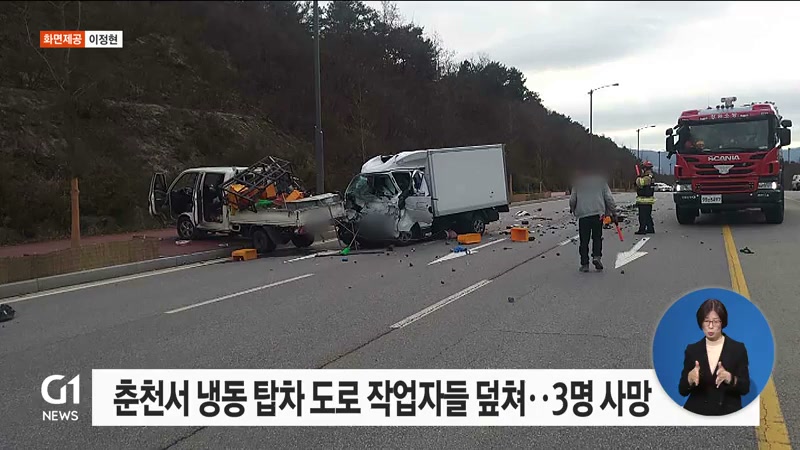 춘천서 냉동 탑차 도로 작업자들 덮쳐..3명 사망