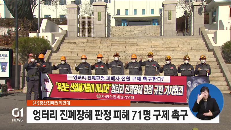 광산진폐권익연대는 어제(25일) 강원도청 앞에서 기자회견을 열고 진폐증을 앓고 있는 폐광지역 전직 광부 71명이 근로복지공단의 진폐 심사에서 의증을 받아 무상진료와 진폐기초연금 대상에서 제외됐다면서 대책을 요구했습니다.