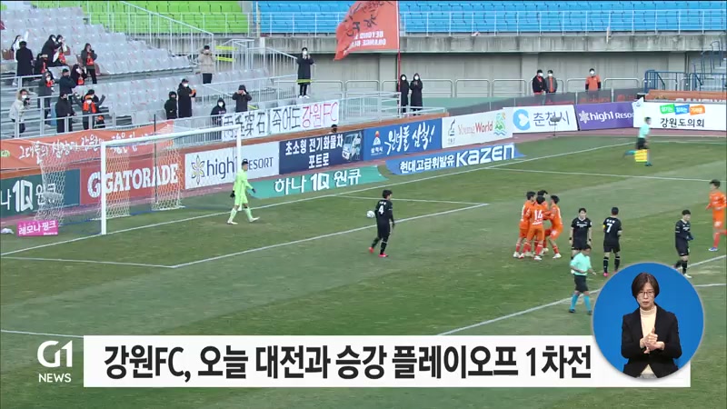 강원 FC는 오늘(8일) 오후 7시 대전 한밭종합운동장에서 1부 리그 승격을 노리는 대전 하나시티즌과 승강 플레이오프 1차전을 갖습니다.