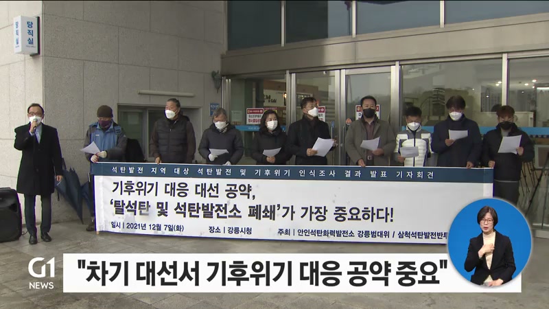 석탄발전을 반대하는 강릉과 삼척지역 시민단체가 강릉시청 앞에서 기자회견을 열고 기후 위기 대응을 대선 의제로 채택해야한다고 주장했습니다.