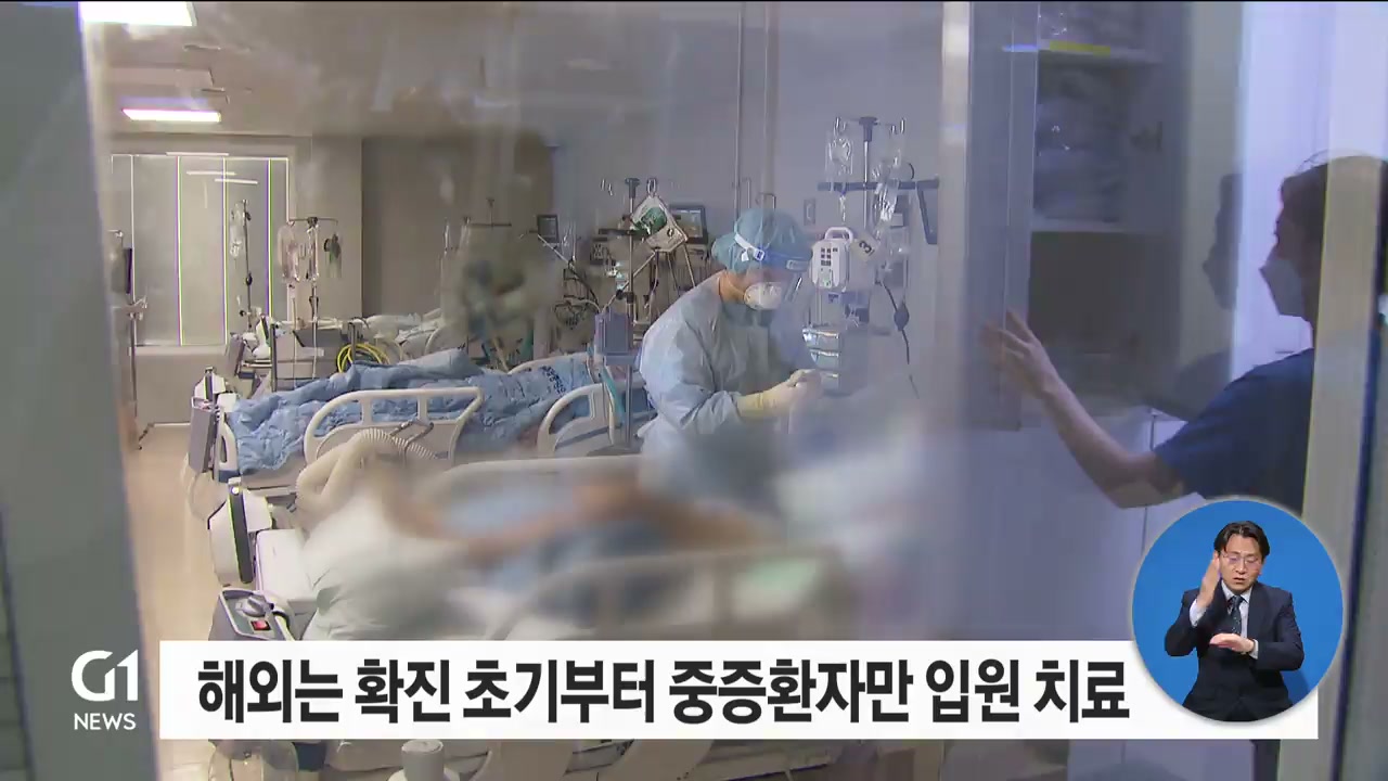 영국 4.59%, 싱가포르 6.95% 등 해외에서는 확진자 발생 초기부터 증증환자만 입원치료하고 있습니다.