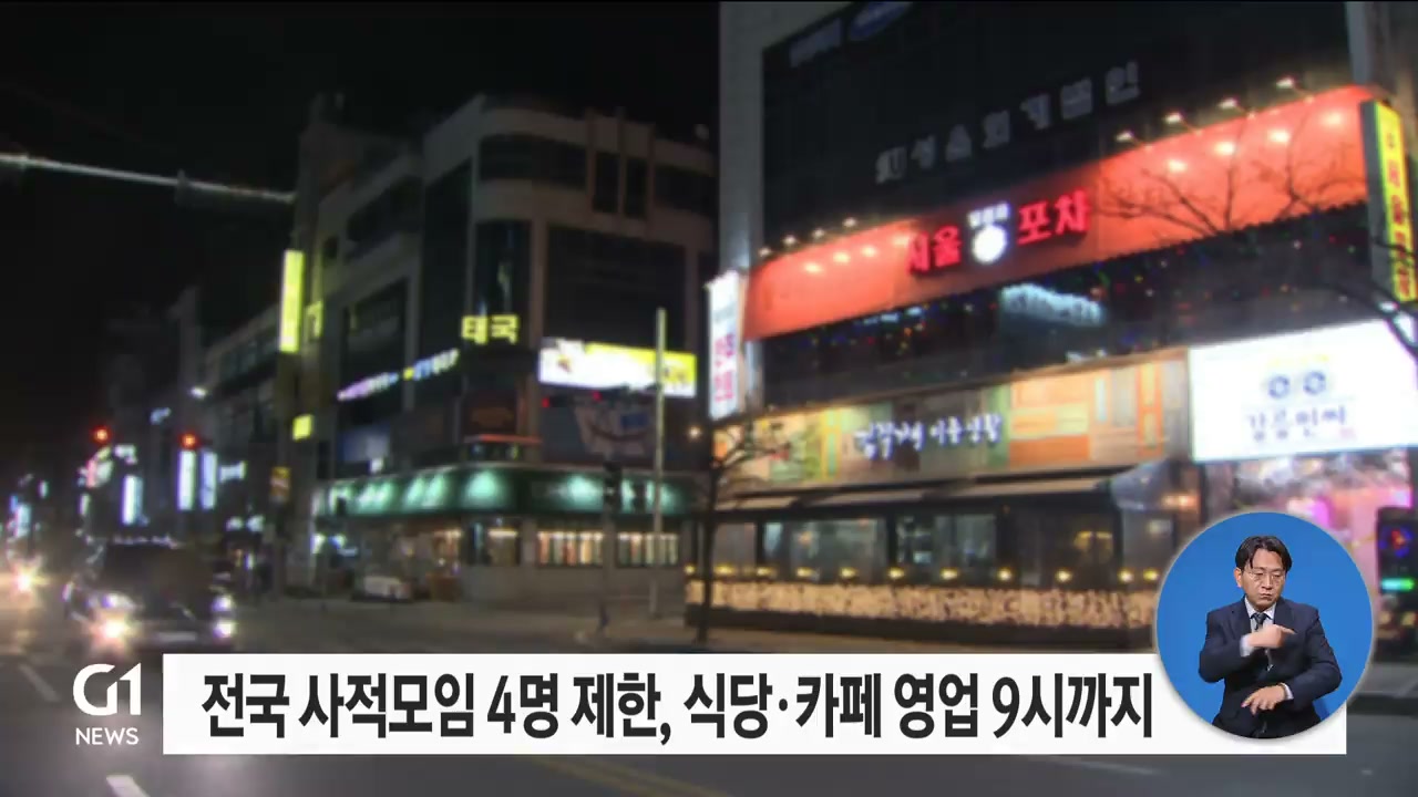 전국 사적모임 4명 제한, 식당·카페 영업 9시