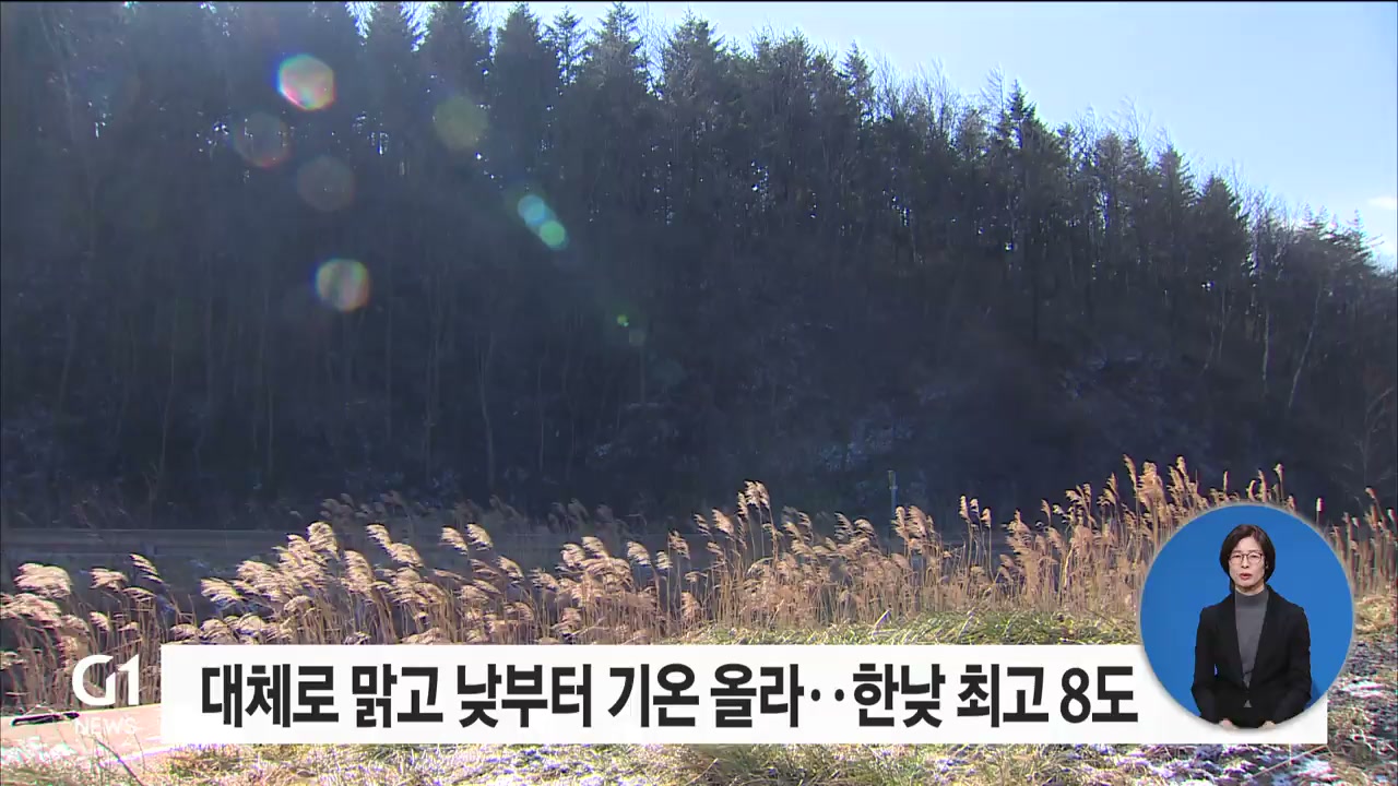 낮 최고기온은 영서권이 2도에서 4도, 영동권은 5도에서 8도로 어제보다 기온이 오르겠습니다.