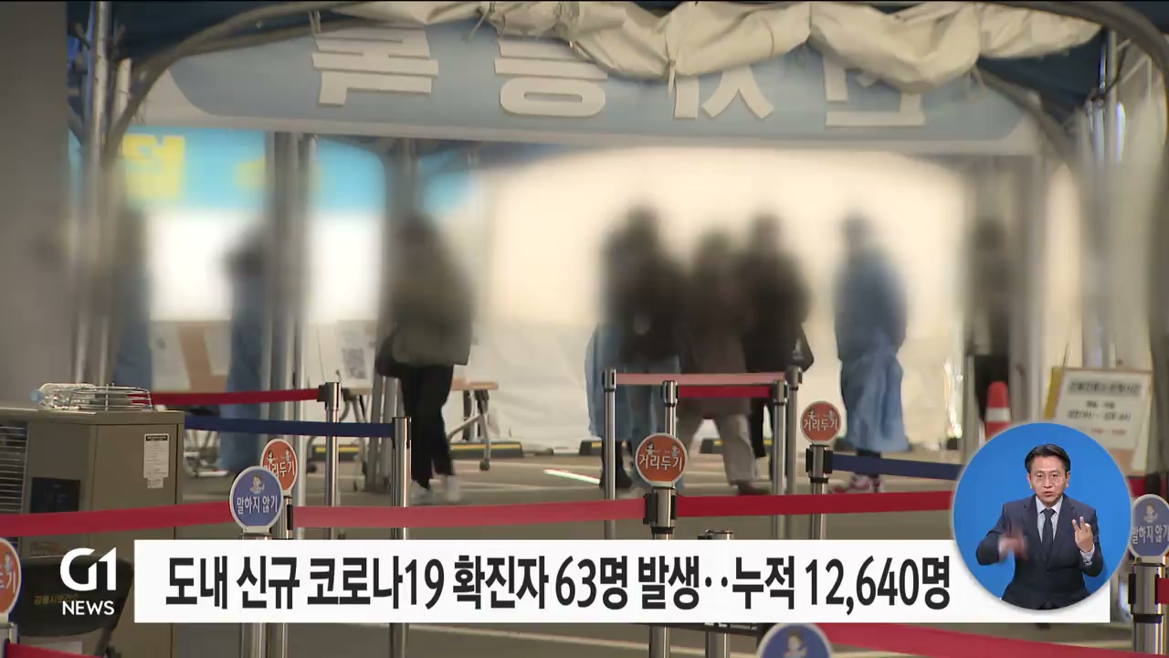도내 신규 코로나19 확진자 63명 발생..누적 12640명