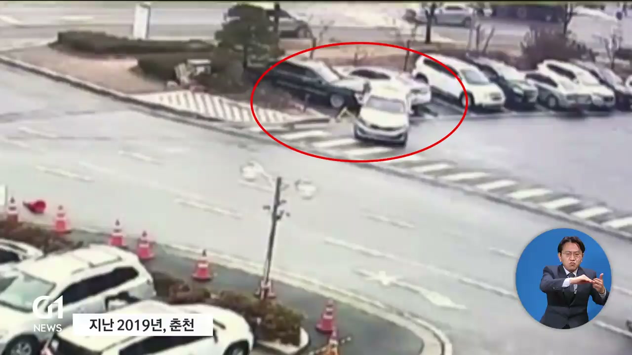 주차장에서 차량 한 대가 전진과 후진을 반복하며 차량을 잇따라 들이받습니다.