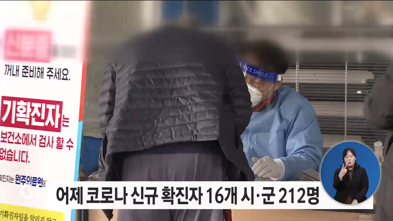 어제 강원도에서는 16개 시·군에서 '코로나19 확진자가 212명 발생했습니다.