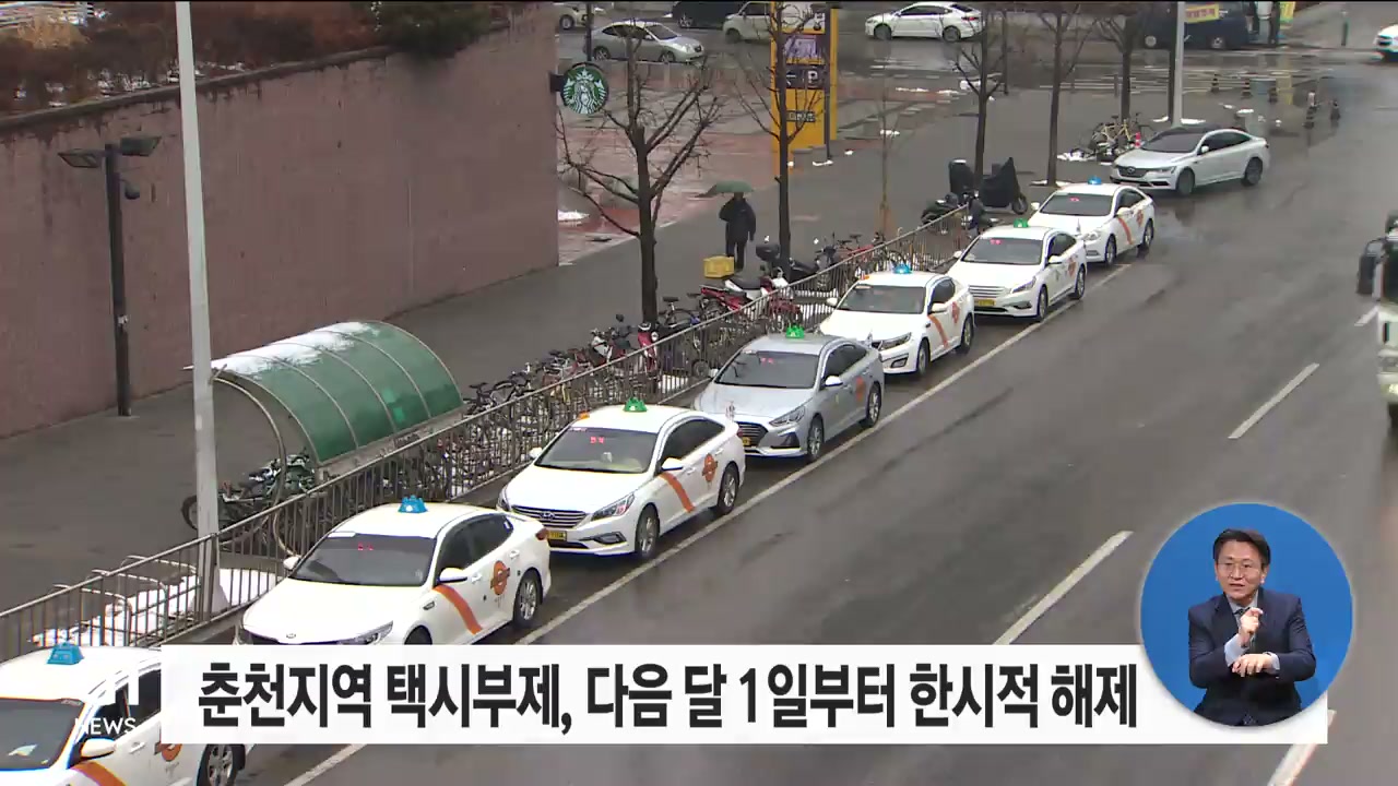 춘천시는 다음달 1일부터 내년 10월 말까지 지역내 개인·일반택시 3부제 운영을 한시적으로 전면 해제한다고 밝혔습니다.
