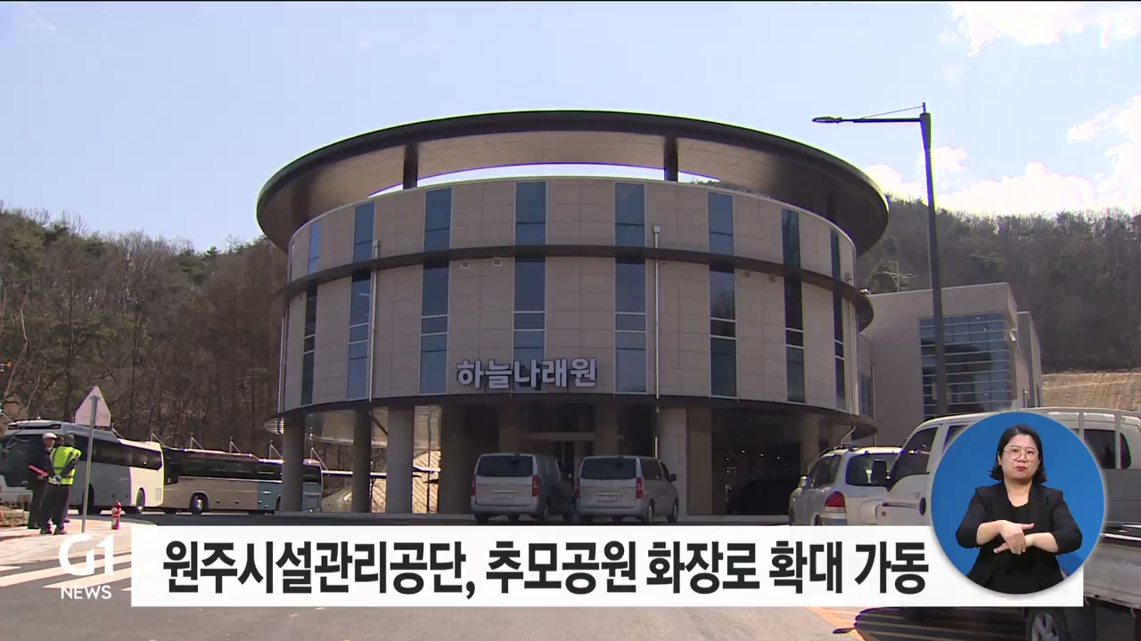 원주시 시설관리공단은 오늘(16일)부터 다음달 30일까지 흥업면 인근 추모공원 화장로를 확대 운영한다고 밝혔습니다.