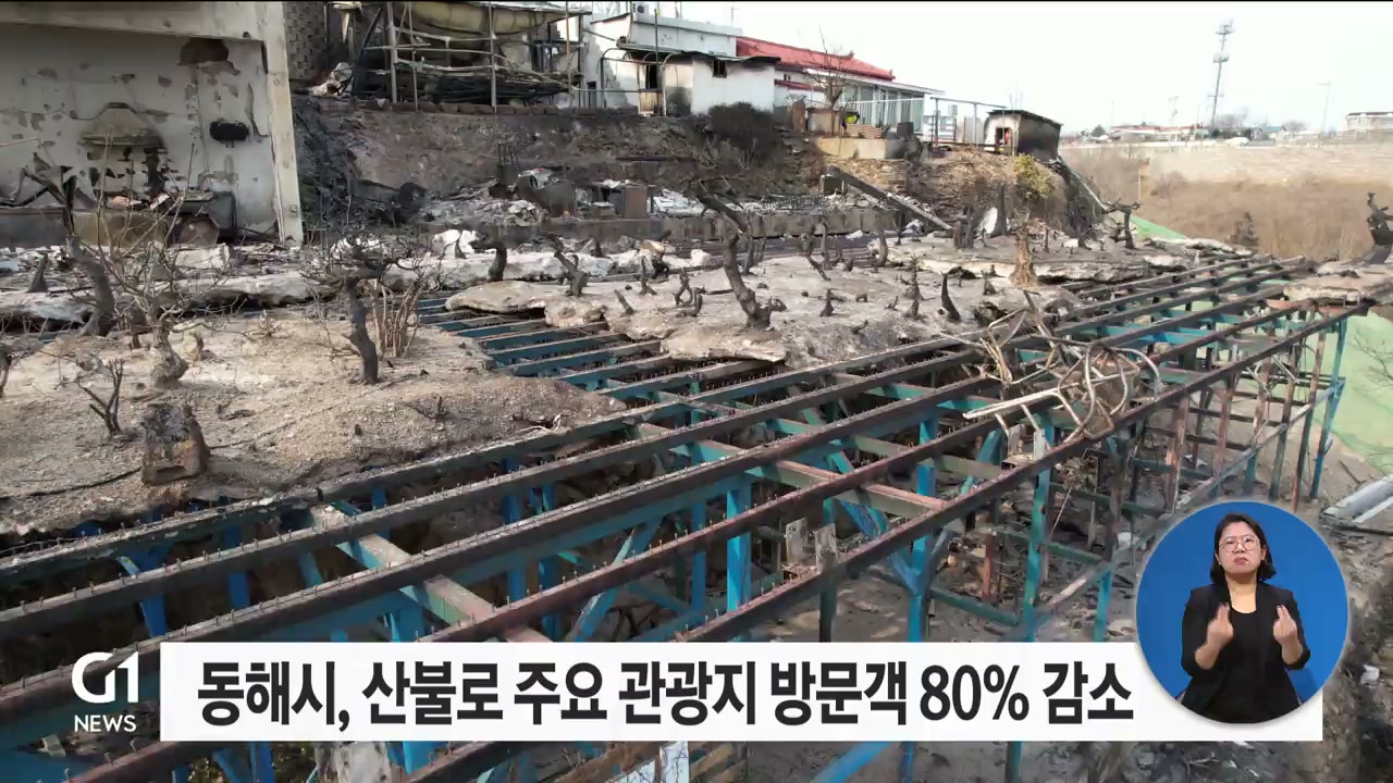 동해시에 따르면 이번 산불로 지난 12일과 13일, 지역 대표 관광지인 도째비골 스카이밸리 입장객이 전주 주말 대비 80%나 감소하는 등 관광객이 크게 줄었습니다.