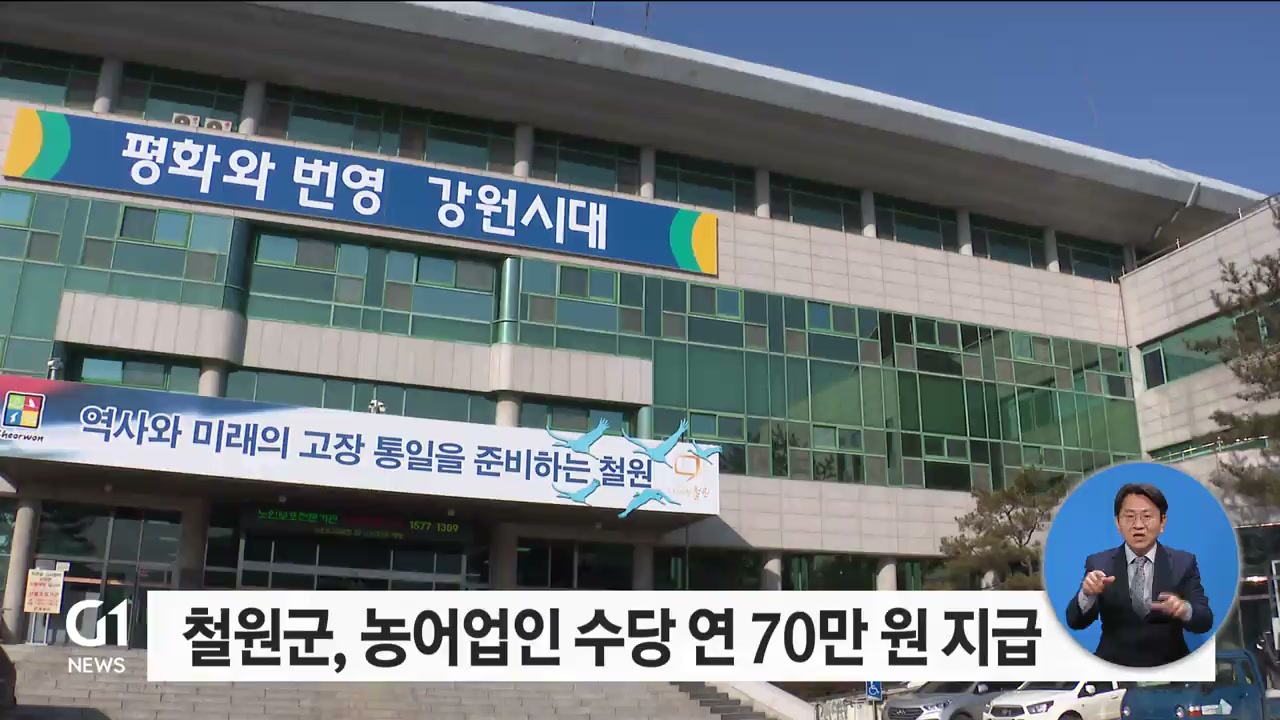 철원군이 다음주부터 농어업인 기본 소득 보장을 위해 '농어업인 수당' 접수를 받습니다.