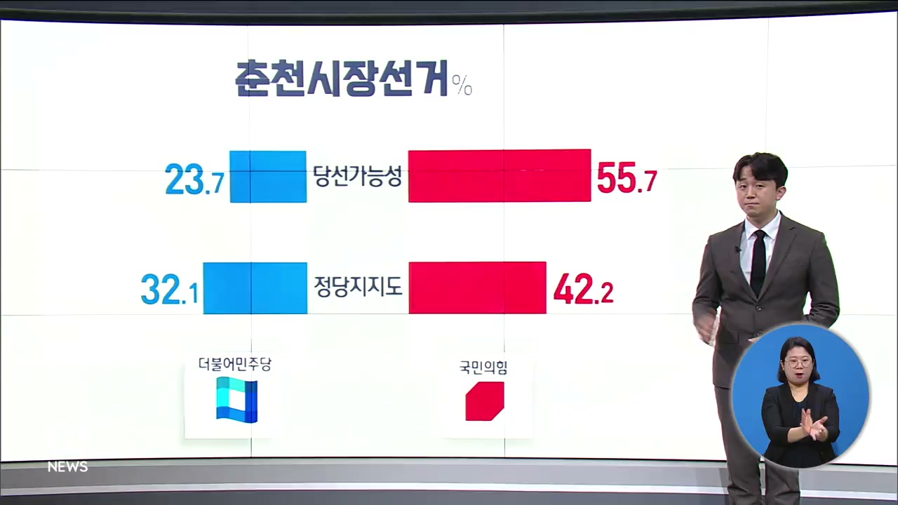 /춘천 응답자의 당선 가능성 후보 평가에서는 국민의힘 55.7%, 더불어민주당 23.7% 였습니다.