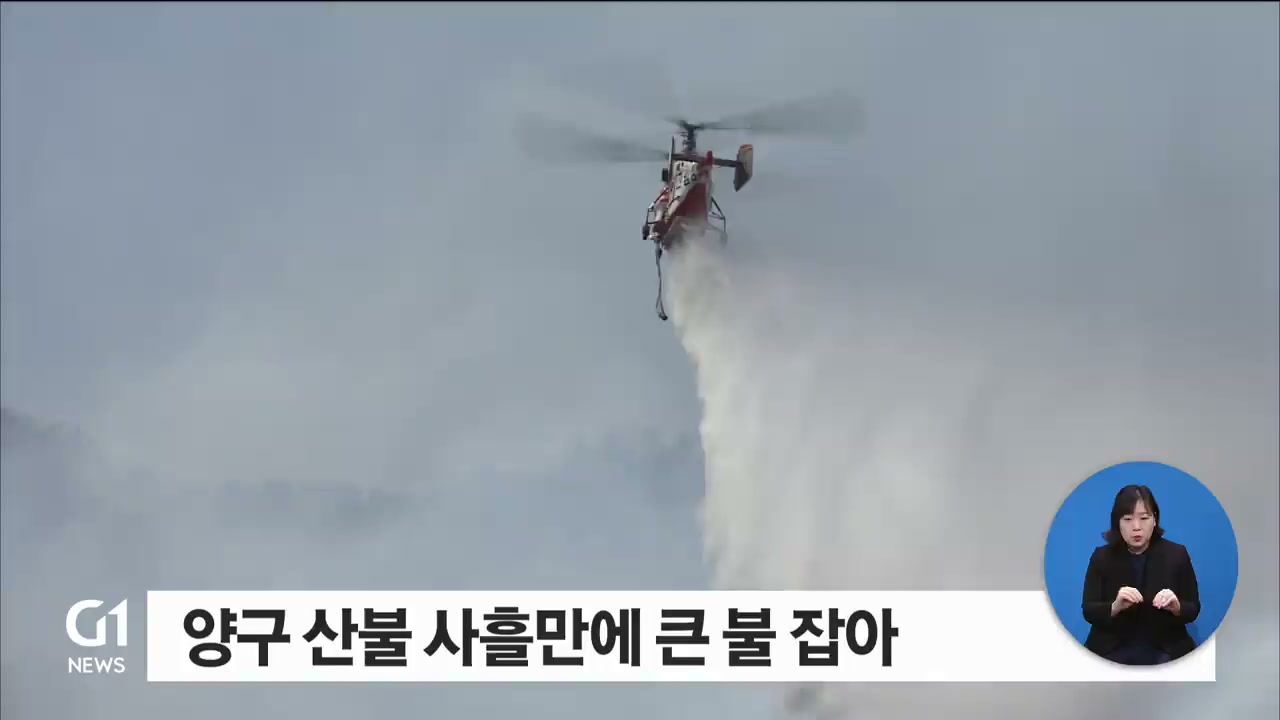 산림당국은 오늘 오전 9시 현재 양구 산불의 진화율이 100%를 보이고 있다고 밝혔습니다.