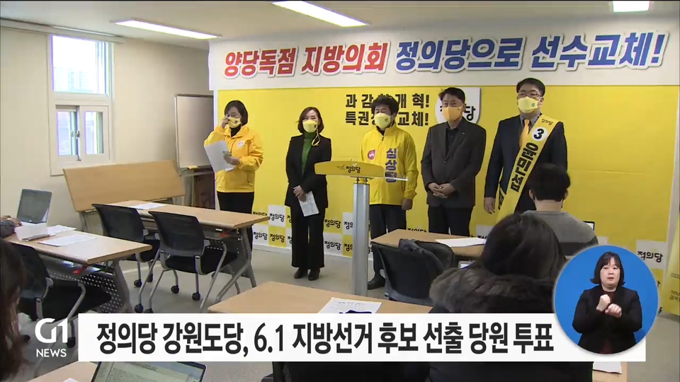 정의당 강원도당이 6·1 지방선거 후보자 선출을 위한 당원 투표를 진행합니다.
