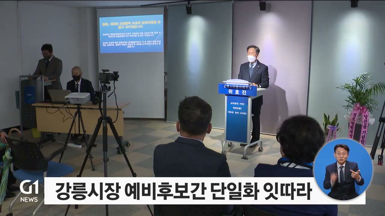 국민의힘 강희문 강릉시장 예비후보도 기자회견을 열고 김홍규 후보로 단일화 하기로 합의했다면서 지지를 호소했습니다.