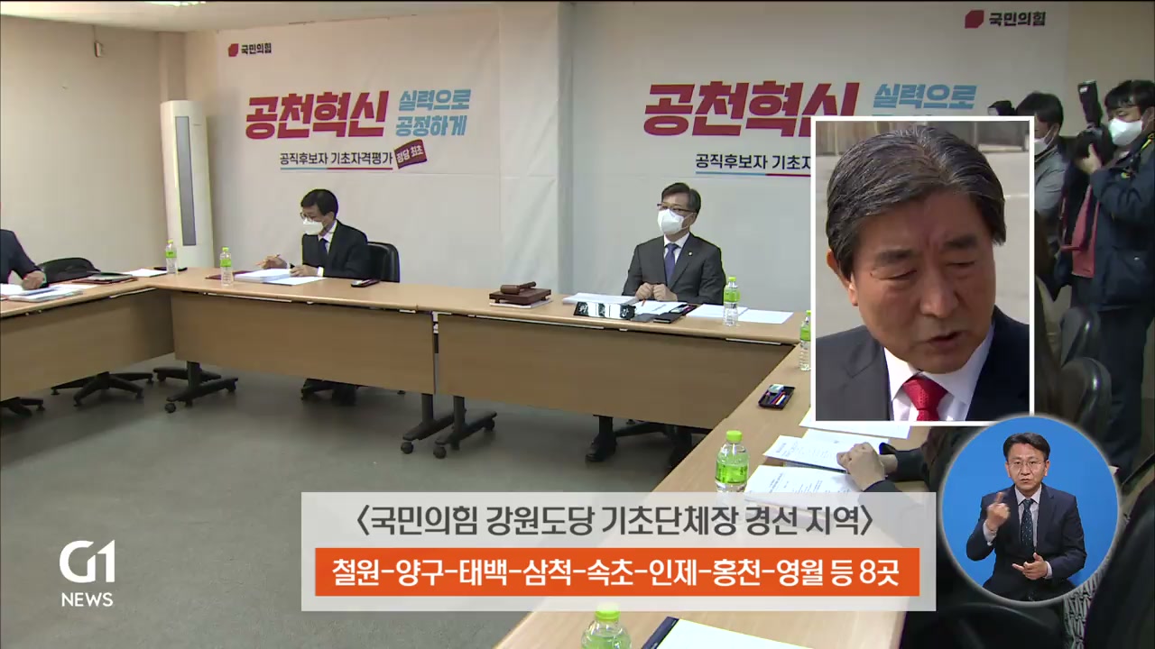 국민의힘 강원도당은 제5차 공관위 회의를 열고 화천군수 최문순, 양양군수 김진하, 횡성군수에 김명기 후보를 단수 후보 추천했습니다.