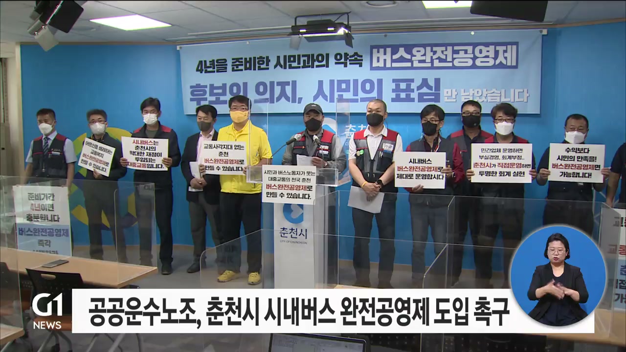 강원지역 공공운수노조로 구성된 버스완전공영제 공동투쟁본부는 지방선거 춘천시장 후보자들에게 춘천 시내버스 완전공영제 도입을 촉구했습니다.