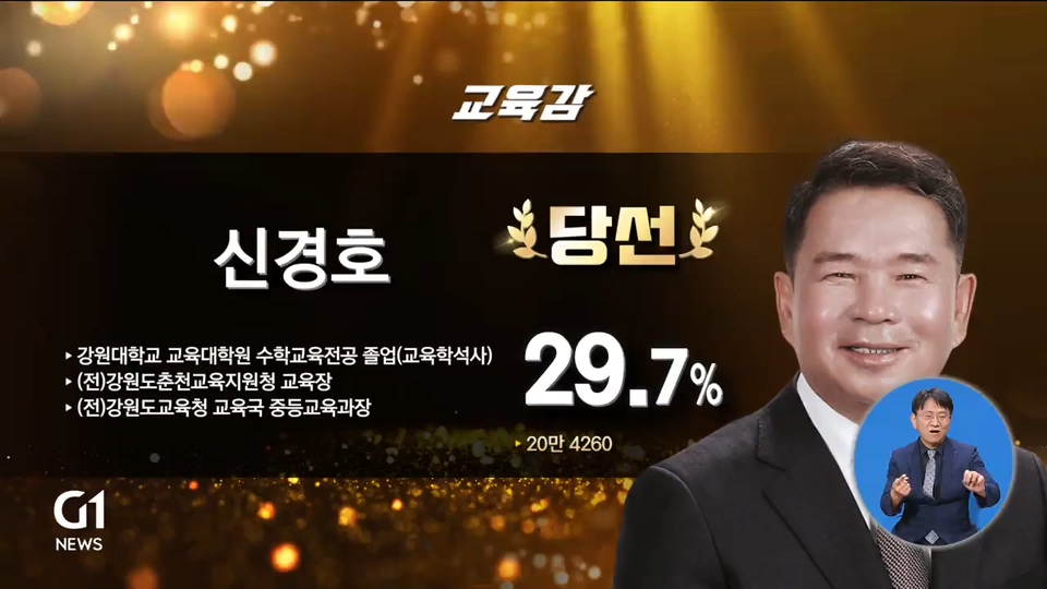 강원도교육감 선거에서는 신경호 후보가 강삼영 후보를 꺾고 당선됐습니다.