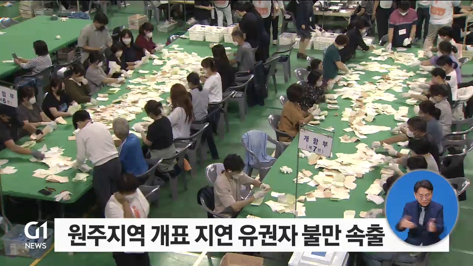 제8회 전국동시지방선거에서 원주지역의 개표 지연으로 유권자들의 불만이 많았다는 지적에 대해 원주시선거관리위원회는 사전투표함 이송에 시간이 오래 소요됐기 때문이라고 밝혔습니다.
