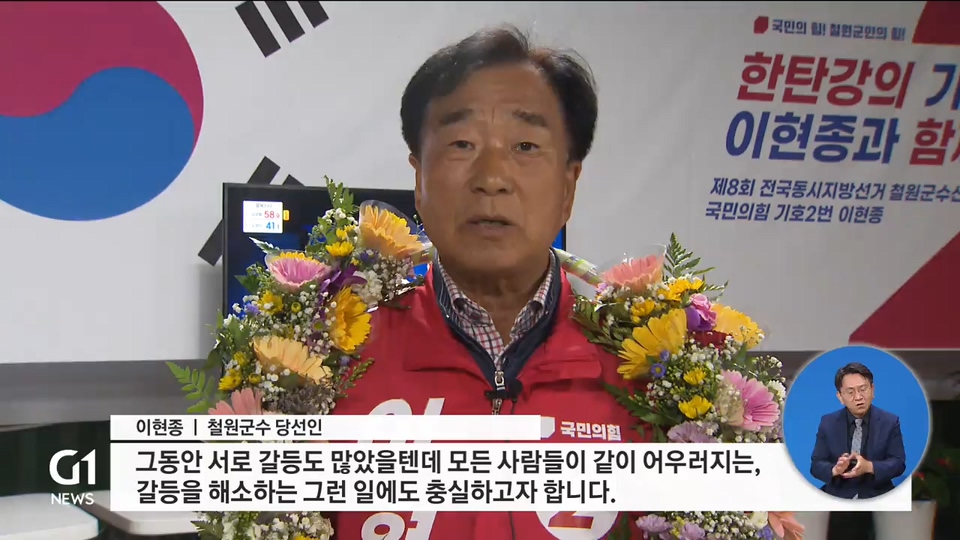 "(군민들의) 기대와 바람에 부응하도록 저는 최선의 노력을 다해서 약속을 지킬 것입니다. 그리고 저를 지지하지 않으셨던 군민들에 대해서도 그분들이 생각하셨던 그러한 부분을 제가 헤아릴 수 있도록 깊은 성찰을.."