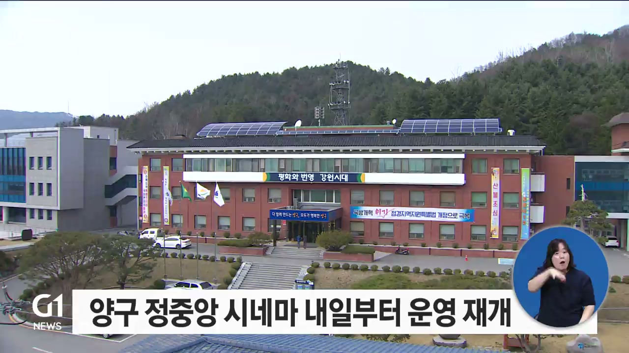 양구군은 양구문화재단이 운영하는 영화관인 정중앙 시네마가 내일(8일)부터 다시 문을 연다고 밝혔습니다.