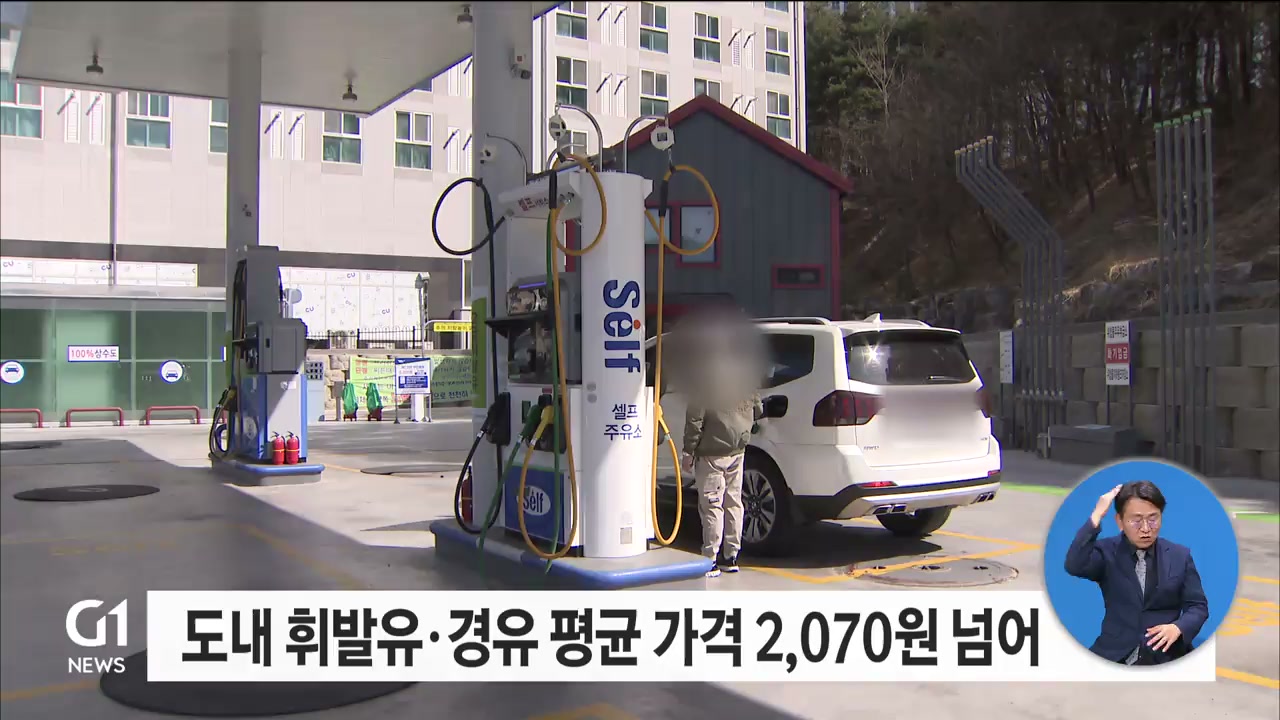강원도내 휘발유와 경유 평균 가격이 1리터에 2천 70원을 넘었습니다.