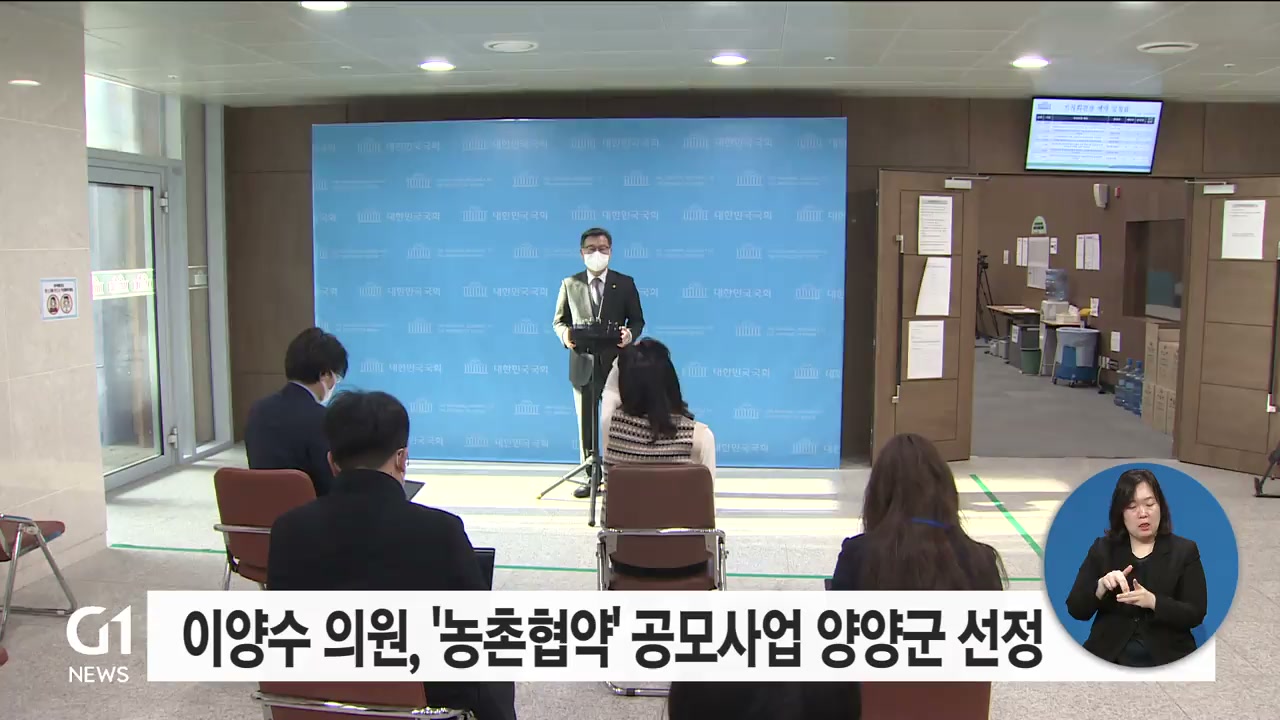 국민의힘 이양수 의원은 양양군이 농촌협약 공모사업에 선정됨에 따라, 오는 2027년까지 국비 291억 원 등 총사업비 484억 원이 투입돼,