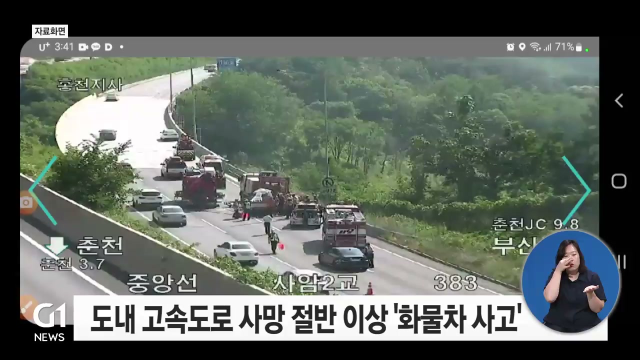 강원경찰청에 따르면, 지난 2019년부터 3년간 도내 고속도로 교통사고 사망자 34명 중 53%인 18명이 화물차 사고 사망자로 나타났습니다.
