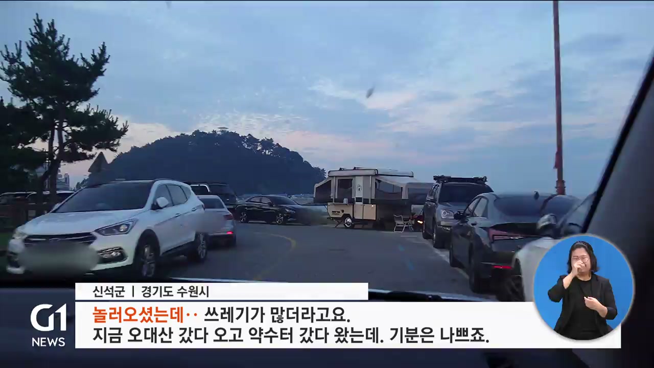 "(놀러오셨는데..) 쓰레기가 많더라고요. 지금 오대산 갔다 오고 약수터 갔다 왔는데. 기분은 나쁘죠."