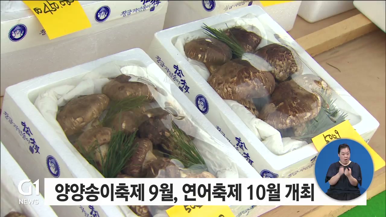 양양문화재단은 양양송이축제를 오는 9월 30일부터 10월 2일까지, 연어축제는 10월 28일부터 30일까지 각각 3일간 개최하기로 했습니다.