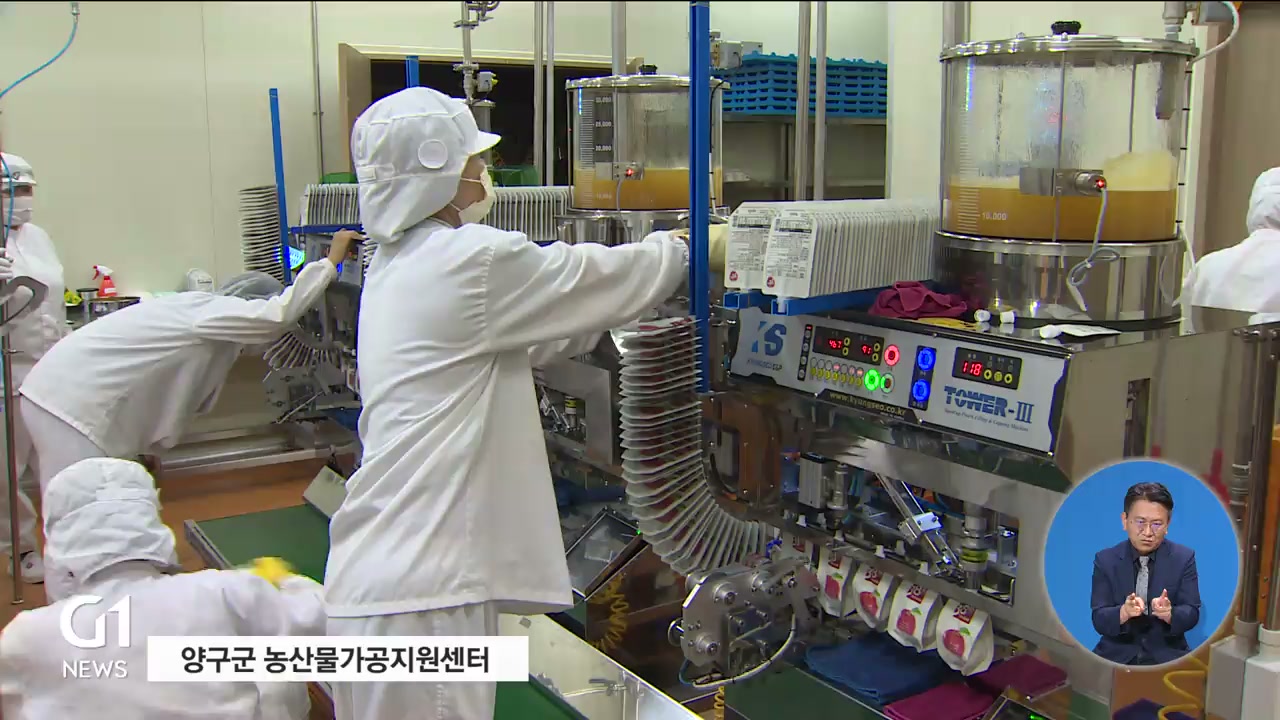 농산물가공지원센터가 농가의 재고 걱정은 덜어주고, 가공품으로 소득은 올려주는 일석이조의 역할을 톡톡히 하고 있습니다. G1뉴스 정동원입니다.