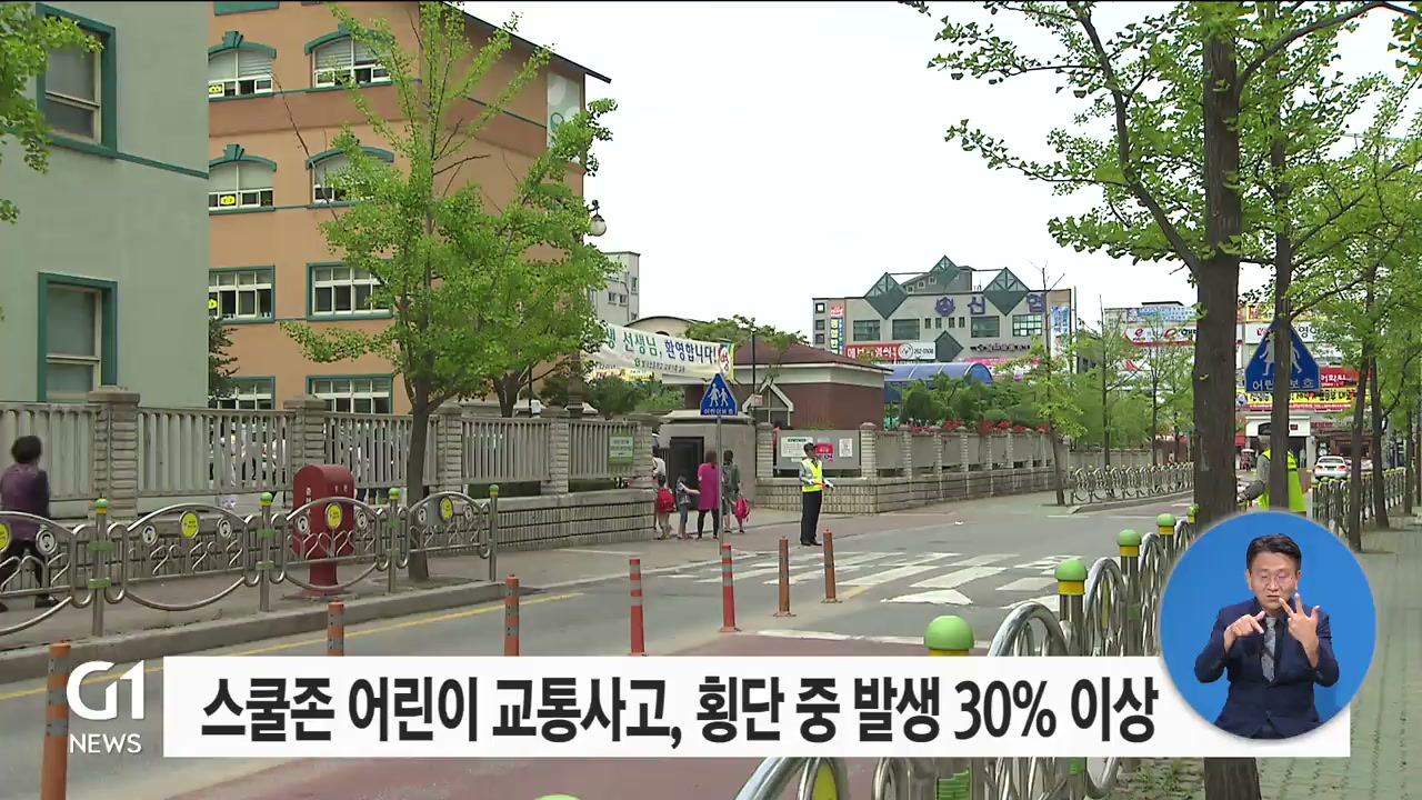 도내 스쿨존에서 발생한 어린이 교통사고 가운데, 길을 건너다가 발생한 사고가 3분의 1 이상인 것으로 나타났습니다.