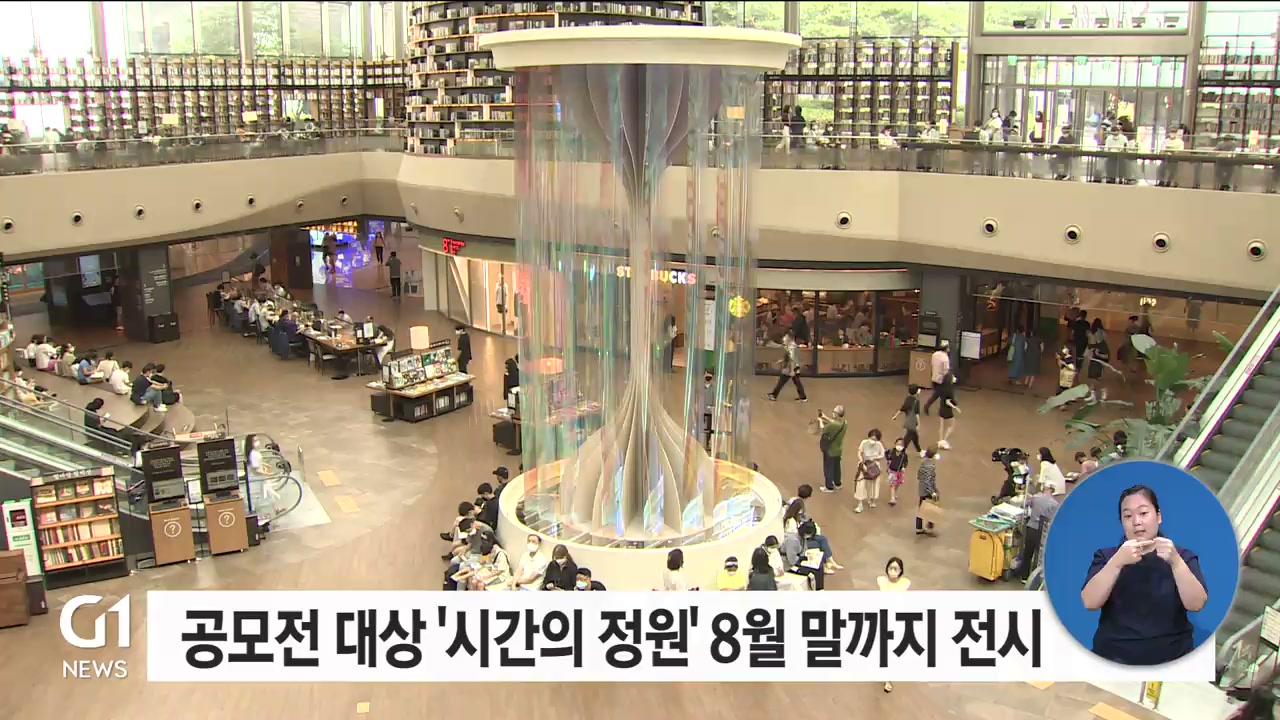 서울 코엑스몰 별마당 도서관에 8미터 높이의 모래시계 모양 조형물이 설치돼 있습니다.