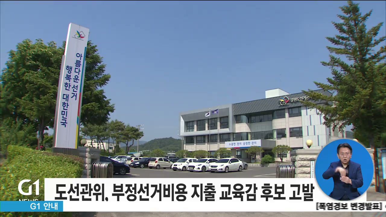 강원도선거관리위원회는 지난 6월 지방선거에서 교육감선거 후보자였던 A씨를 부정선거 비용 지출 혐의로 춘천지방검찰청에 고발했다고 밝혔습니다.