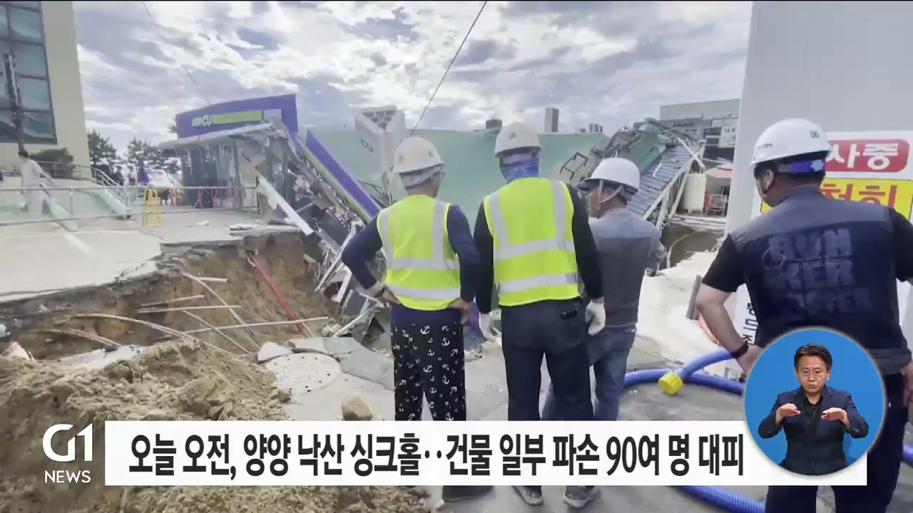 오늘 오전, 양양 낙산 싱크홀..건물 일부 파손 90여
