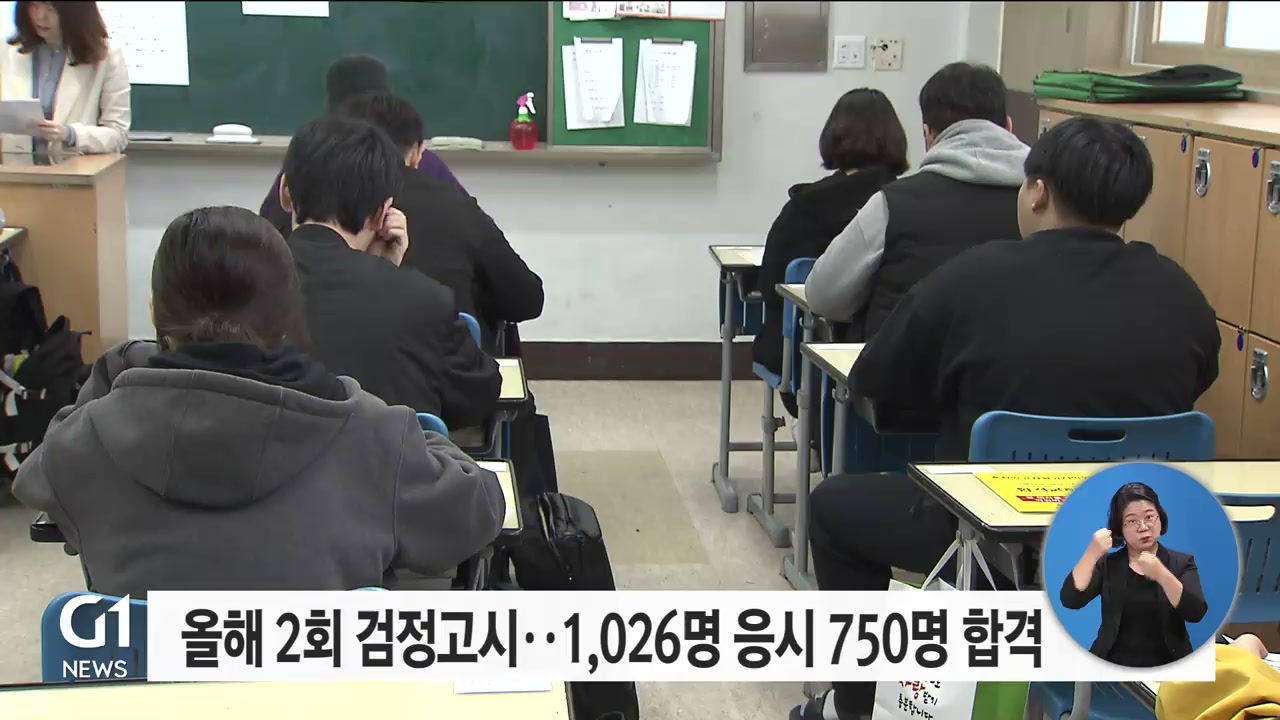 올해 제2회 초중고졸 검정고시 시험에 1,026명이 지원해 750명이 합격한 것으로 집계됐습니다.