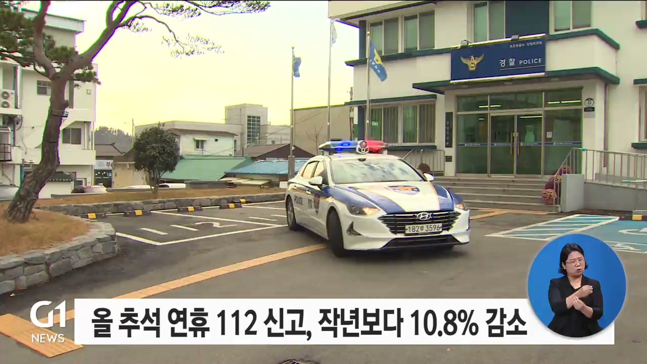 강원경찰청에 따르면, 가정폭력과 아동학대, 폭력범죄와 교통사고 등 112 신고가 지난해 추석 연휴와 비교해 10.8% 감소했습니다.