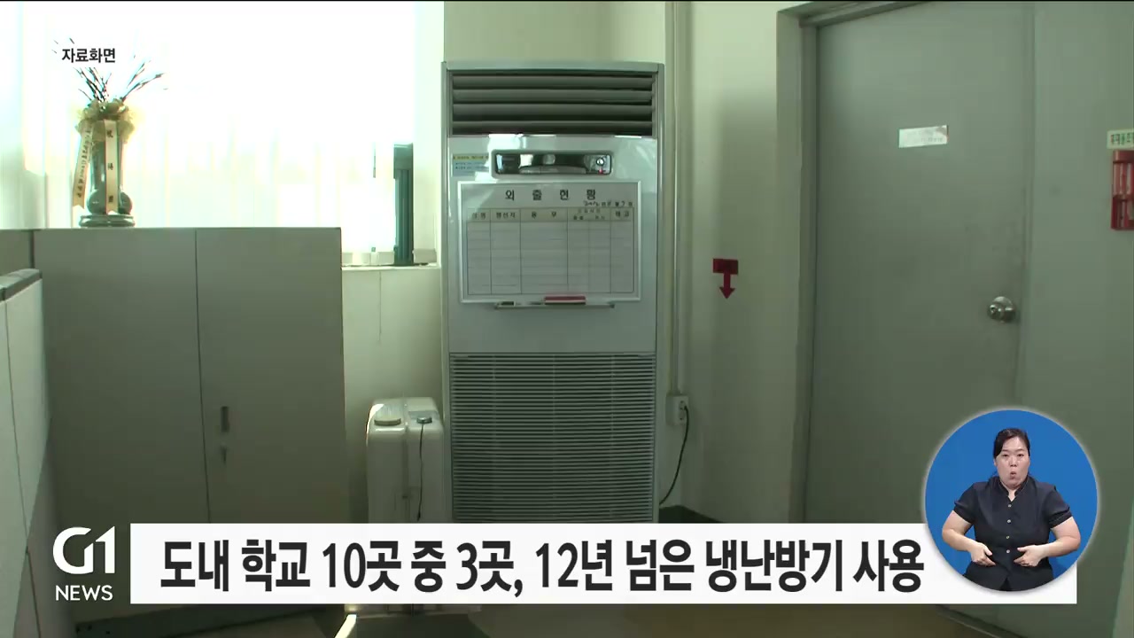 도내 초중고와 특수학교 10곳 중 3곳은 교육부의 교체 기준인 사용연수 12년을 넘긴 냉난방기를 사용 중인 것으로 나타났습니다.