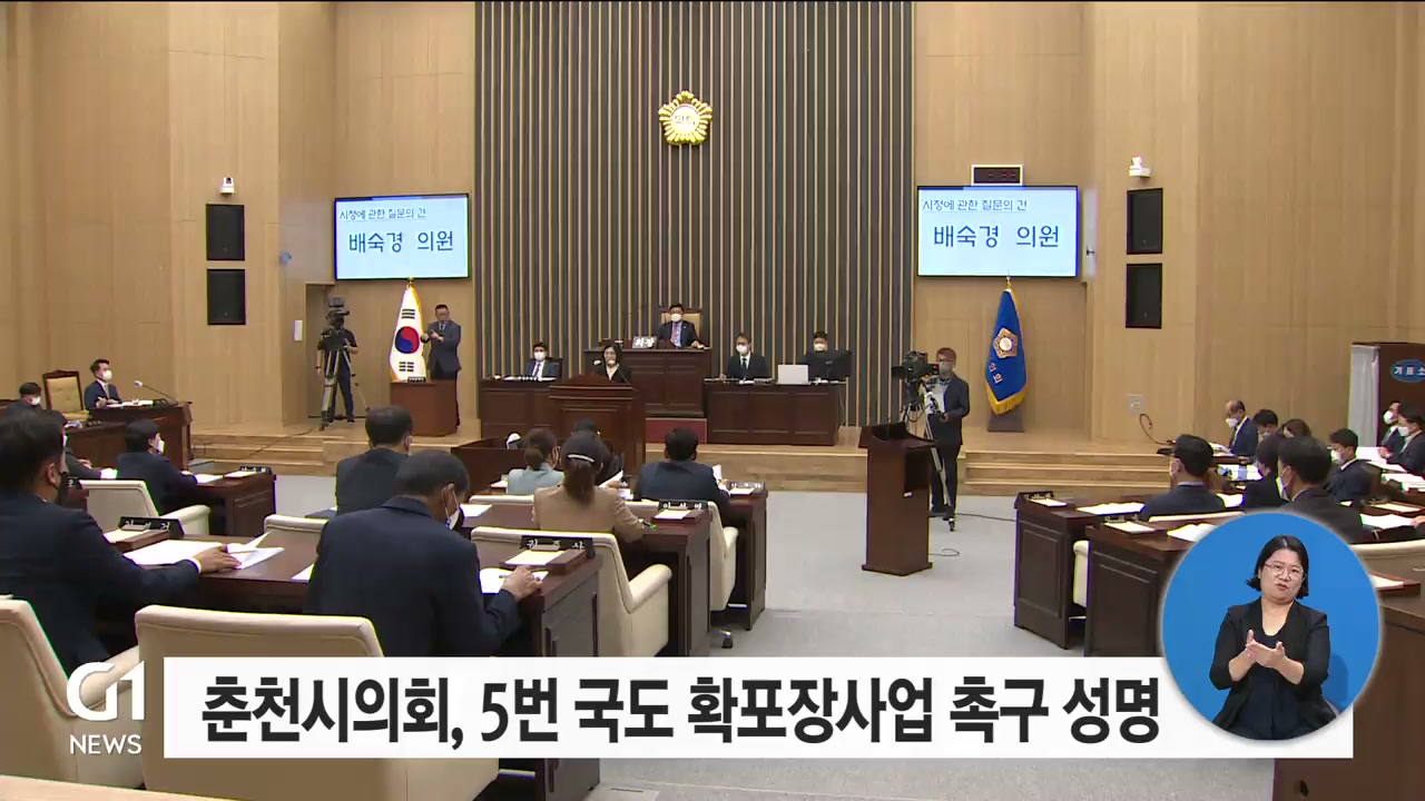 춘천시의회가 춘천-홍천간 5번 국도 확·포장사업 조기 추진을 촉구하고 나섰습니다.