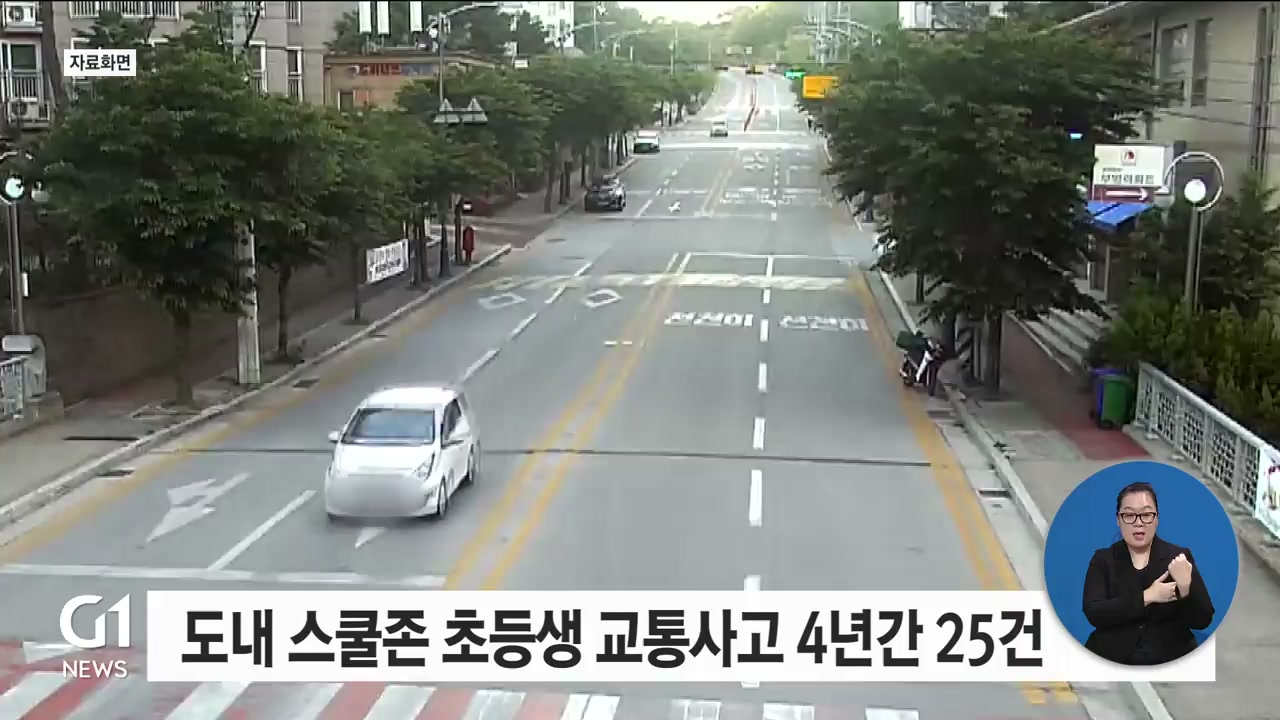 4년 동안 도내 어린이보호구역내에서 발생한 초등학생 교통사고는 모두 25건으로 조사됐습니다.