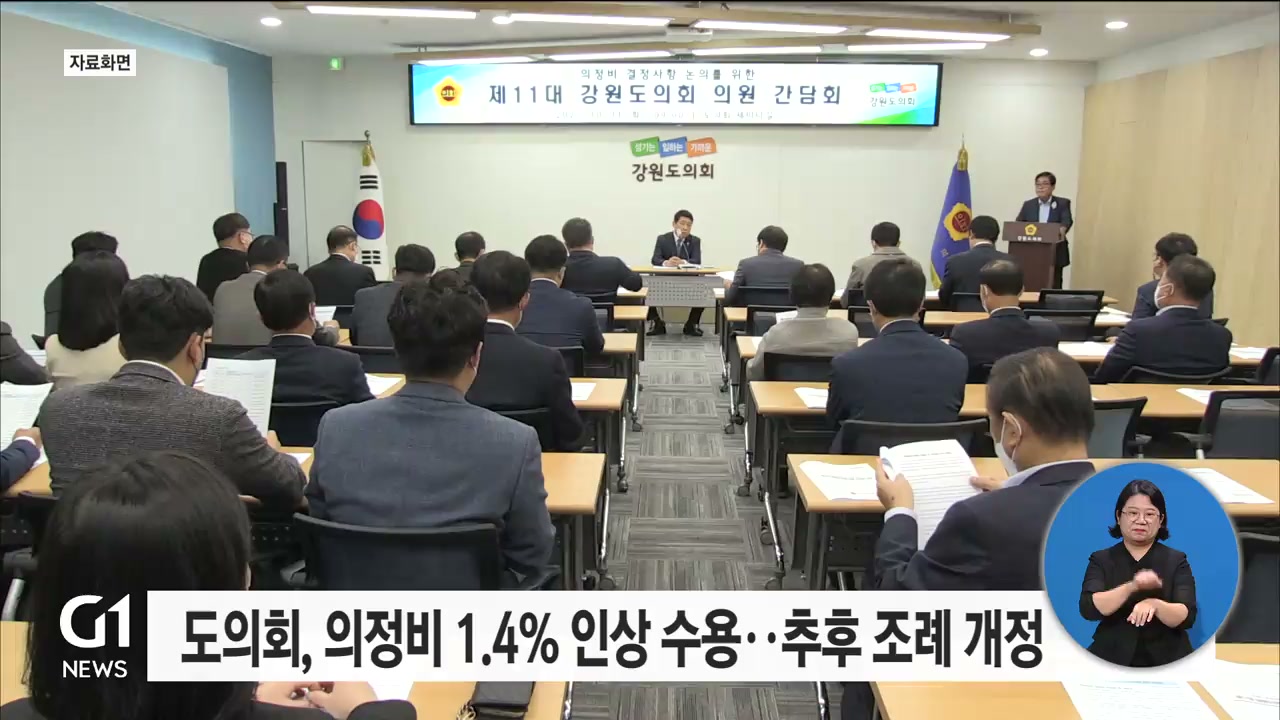 도의회는 어제(11일) 권혁열 도의장 주재로 열린 의원 간담회에서, 강원도 의정비심의위원회에서 의결한 의정비 인상안을 수용하는 것으로 합의하고, 오는 12월 관련 조례를 개정하기로 했습니다.