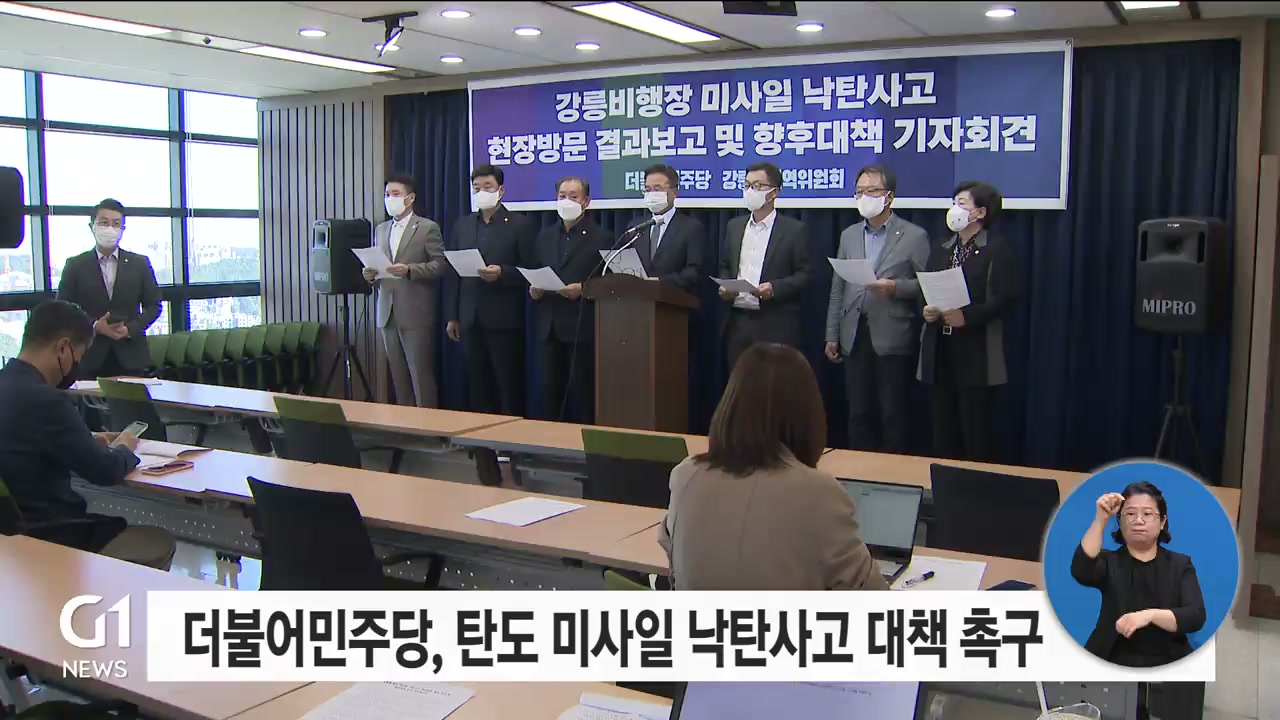 더불어민주당 강릉시지역위원회가 기자회견을 열고 강릉 비행장 탄도 미사일 낙탄사고에 대한 향후 대책 마련을 촉구했습니다.