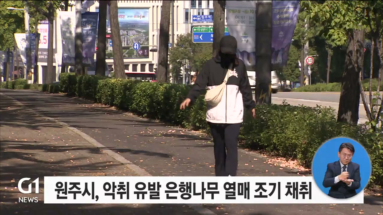 원주시는 도심 악취를 막기 위해 올해 은행나무 열매를 조기 채취합니다.