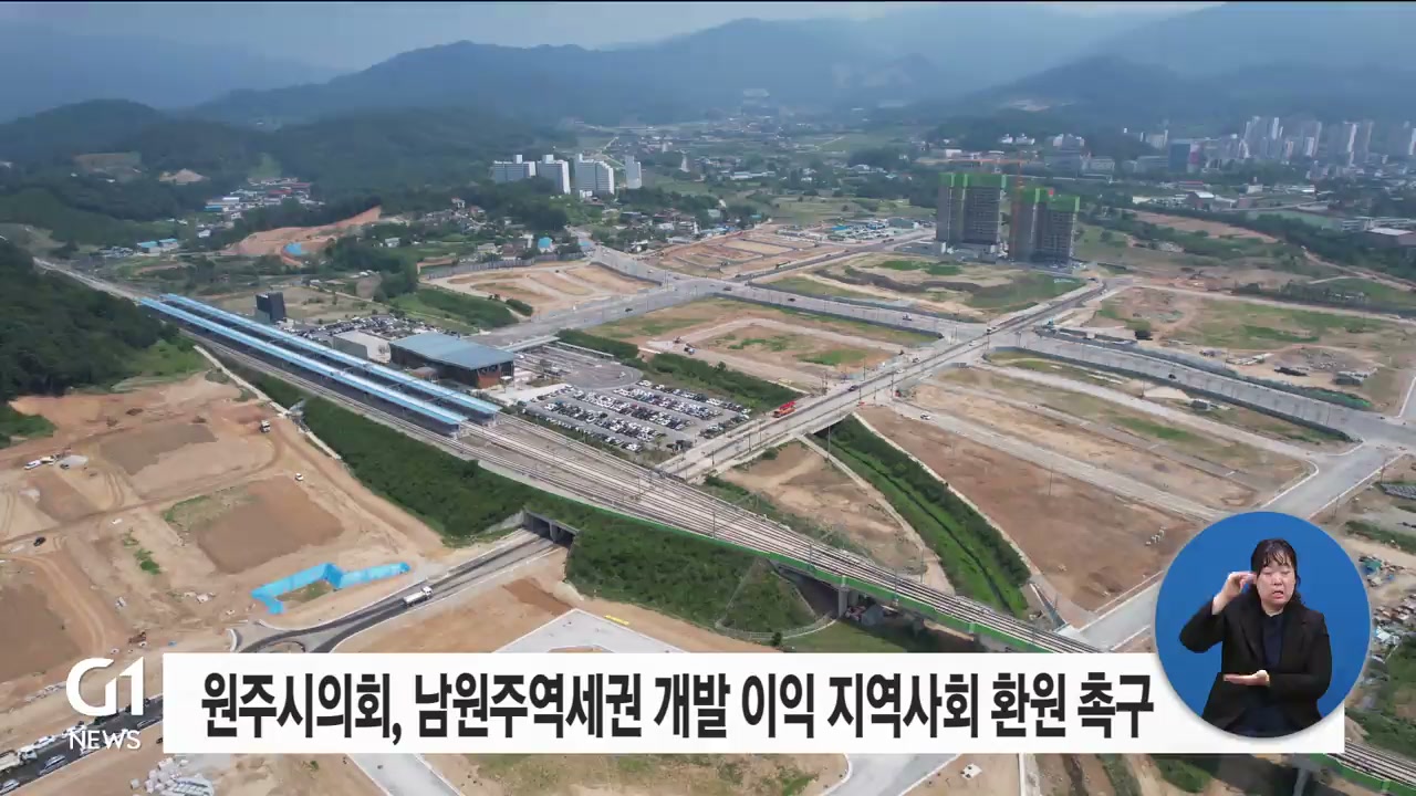 G1 방송이 연속 보도한 한국토지주택공사의 남원주역세권 개발 사업 땅 장사 논란과 관련해, 원주시의회가 개발이익에 대한 지역사회 환원을 촉구하고 나섰습니다.