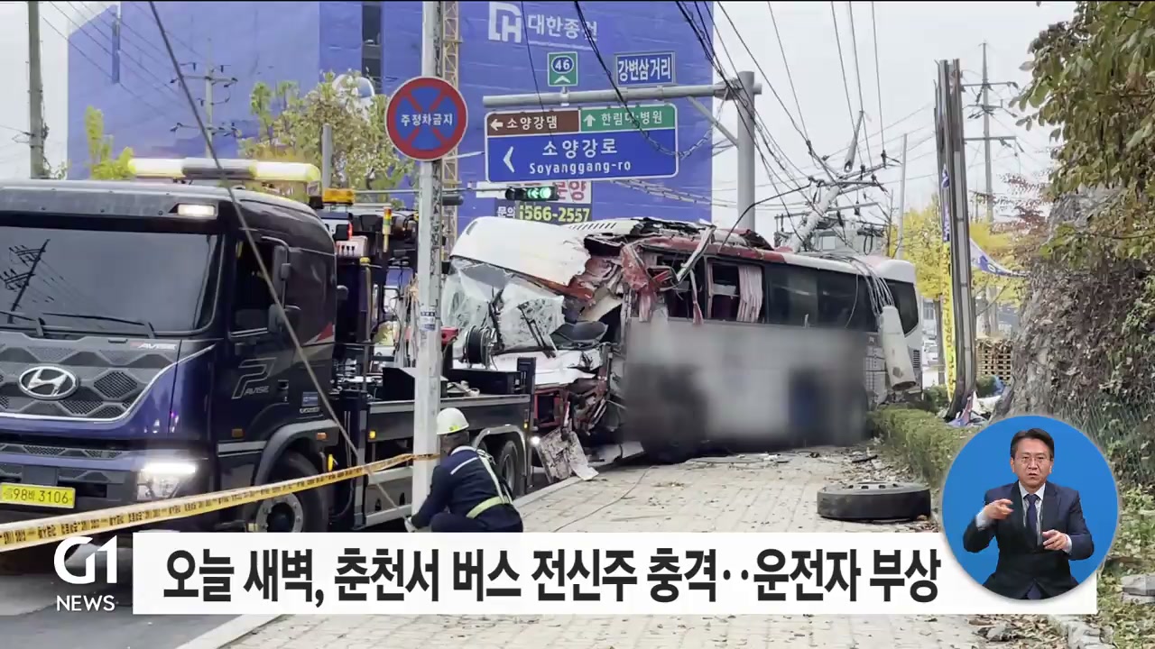 춘천서 버스가 전신주 들이받아‥운전자 부상