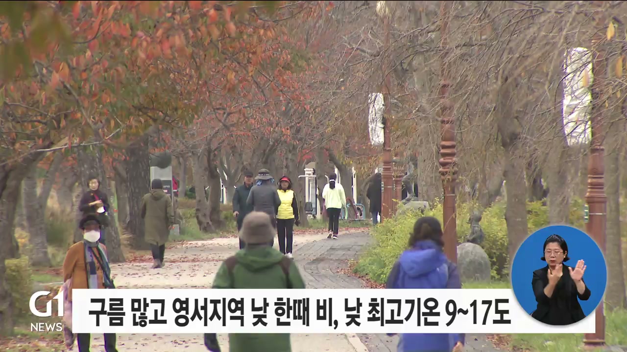 구름 많고 영서지역 낮 한때 비, 낮 최고기온 9~17도