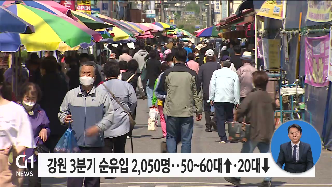 강원 3분기 순유입 2,050명..50~60대↑·20대↓