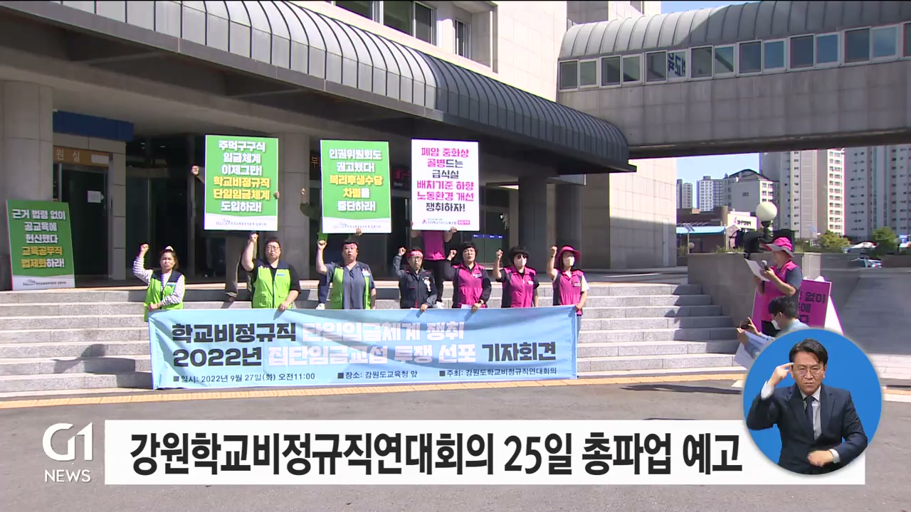 도내 학교 돌봄, 급식 노동자 등으로 구성된 강원학교비정규직연대회의가 오는 25일 총파업을 예고하면서 파장이 예상됩니다.